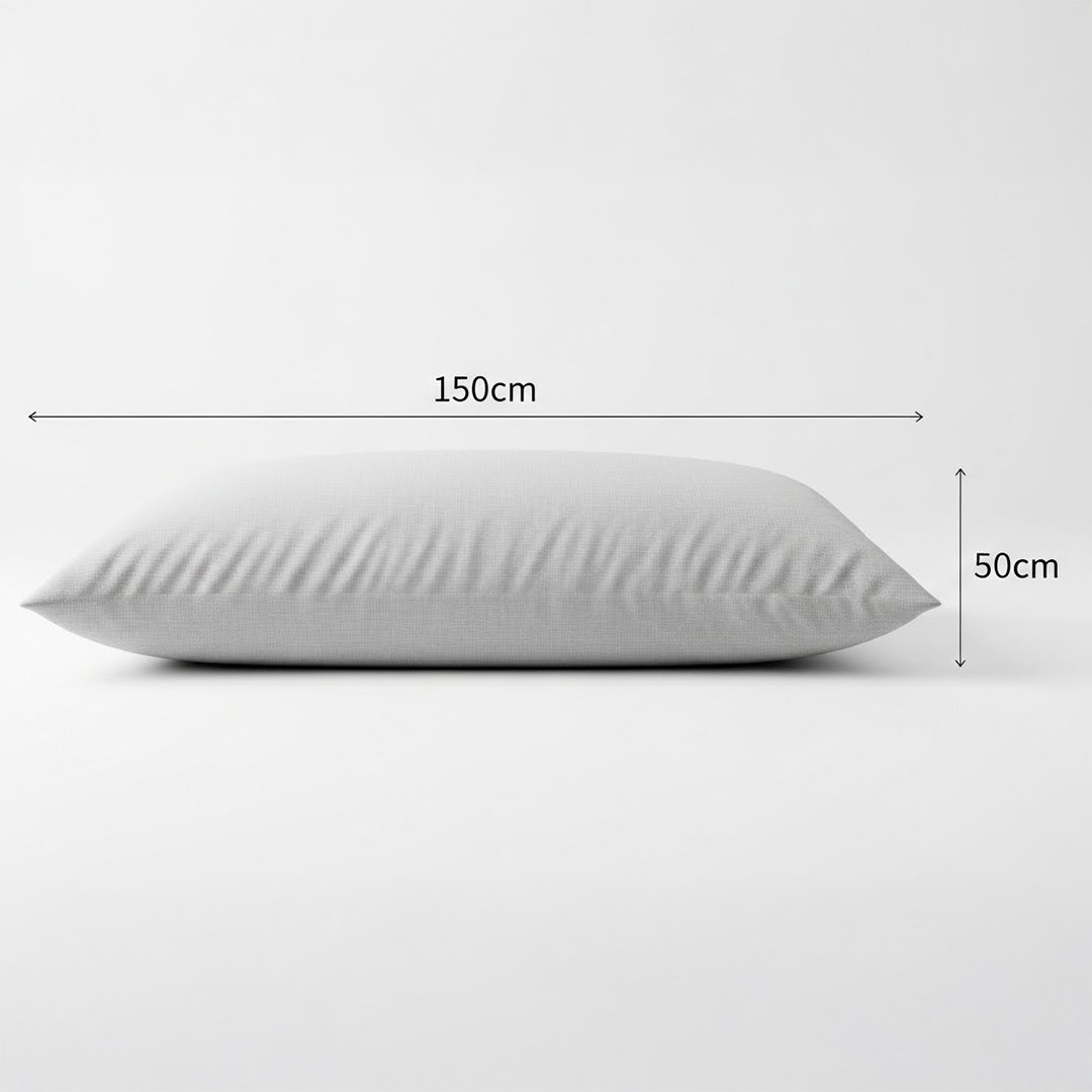 يعد المقاس الكبير 150 × 50 سم مثاليًا لمن يفضلون المخدات الطويلة جدًا أو مشاركة المخدة، حيث يوفر مساحة واسعة للحركة أثناء النوم، سواء على الظهر أو الجنب.